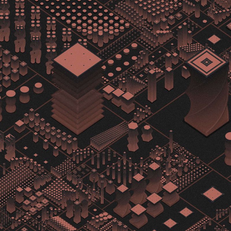 With every piece, a world of complex geometries and colors evolves, drawing the viewer into a futuristic cosmos of order and chaos.